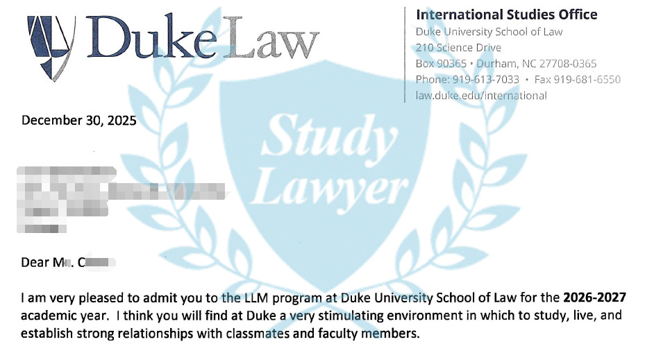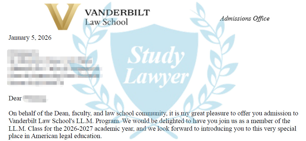 此外,西北大學法學院和杜克大學法學院的LLM也在繼續放榜中,多位學律申請者再度收穫offer。此外,也有申請者收到Vanderbilt法學院的錄取通知。