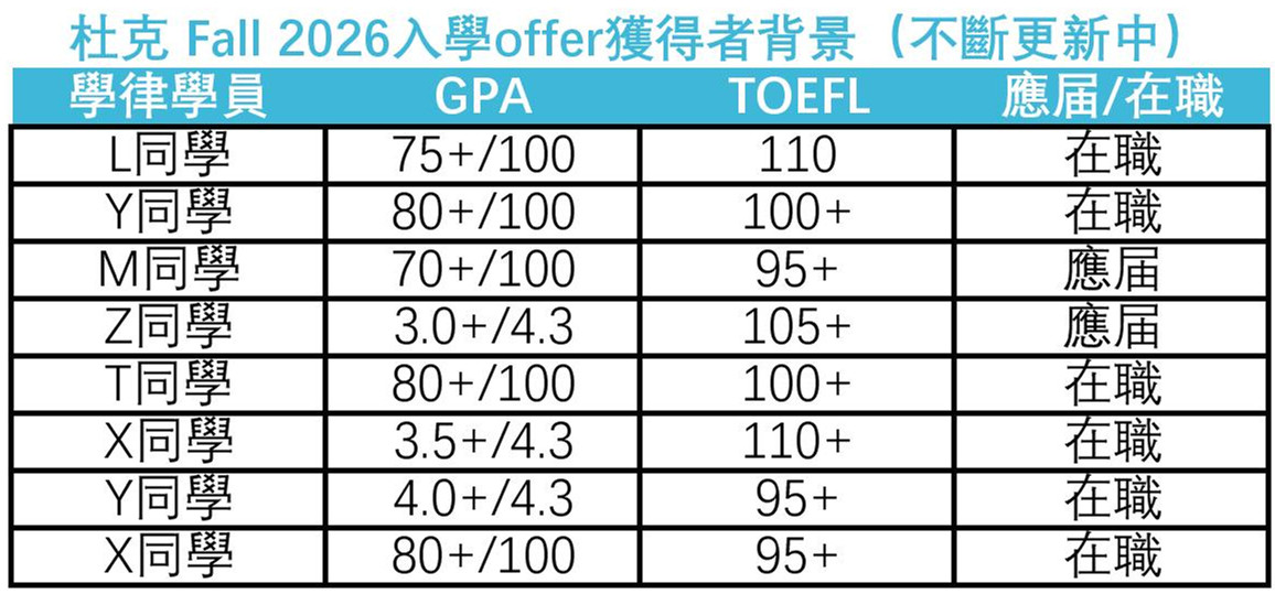 杜克LLM offer已累計達到8張,以下是錄取者的一些背景情況: