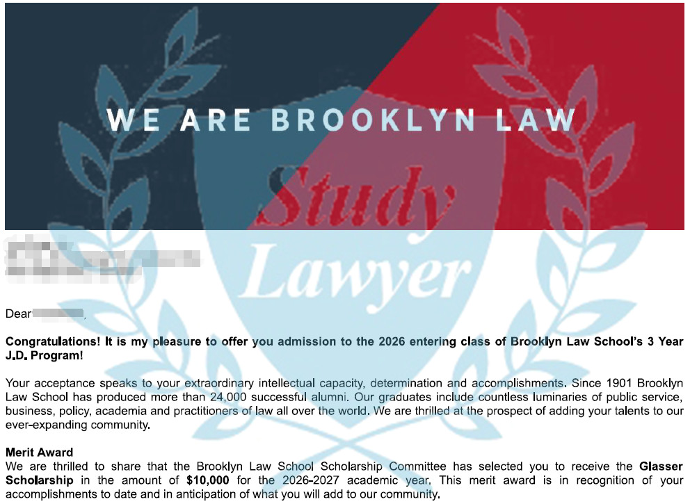Brooklyn JD offer & scholarship: