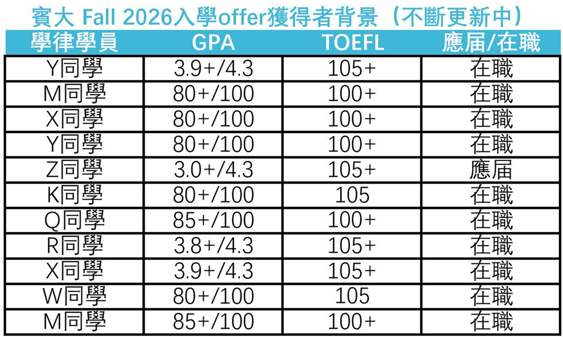 賓大LLM首輪放榜了!十多位錄取者有什麼樣的背景?