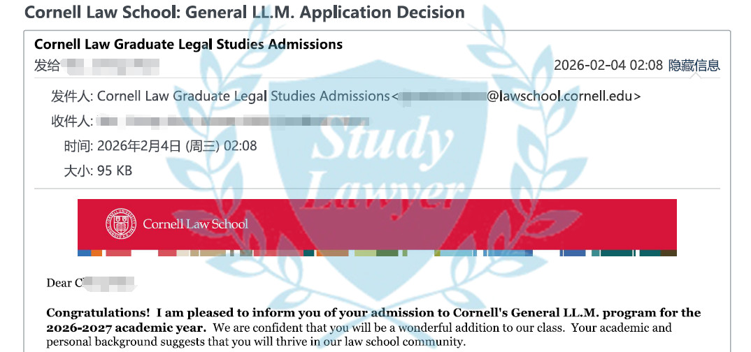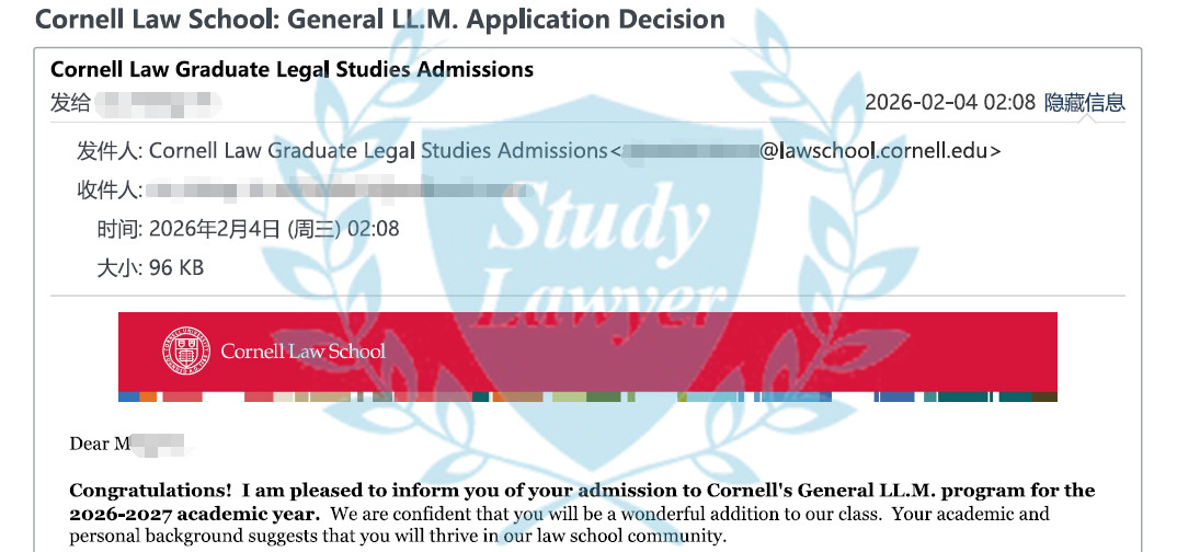 今天,有20多位學律申請者收到了康乃爾法學院的LLM錄取通知,恭喜!