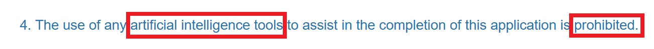 “使用任何人工智慧工具完成申請都是禁止的。”